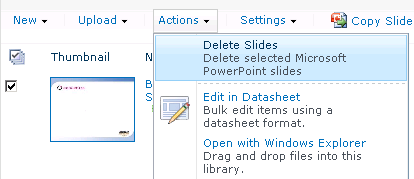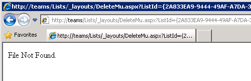 Update 9 March 2011: I’ve noticed you also run into issues if you create a slide library list instance within the /Lists/ subfolder. When you try to delete a slide library you are taken to a page with a URL similar to http://teams/Lists/_layouts/DeleteMu.aspx?ListId={2A833EA9-9444-49AF-A7DA-32EF76BB90C9}&SelectedIds=1 and you receive a blank page with the message ‘File not found’. Another reason to avoid the /Lists/ folder in the URL when creating document libraries (or subtypes like the slide library).